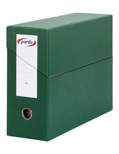 Caja transferencia compacta con doble refuerzo y tarjeta en lomo.