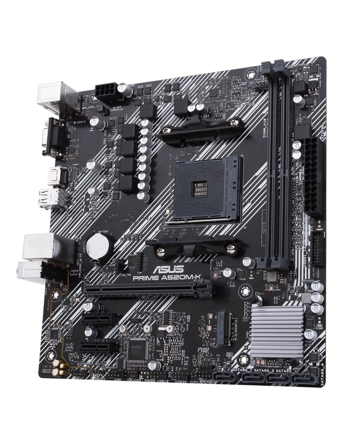 ASUS PRIME A520M-K. Fabricante de procesador: AMD, Socket de procesador: Zócalo AM4, Procesador compatible: AMD Ryzen™ 3, AMD Ryzen™ 5, AMD Ryzen™ 7. tipos de memoria compatibles: DDR4-SDRAM, Memoria interna máxima: 64 GB, Tipo de ranuras de memoria: DIMM. Interfaces de disco de almacenamiento soportados: M.2, SATA III, Tipos de unidades de almacenamiento admitidas: HDD & SSD, Niveles RAID: 0, 1, 10. Conector USB: USB tipo A. Tipo de interfaz ethernet: Gigabit Ethernet, Controlador LAN: Realtek RTL8111H