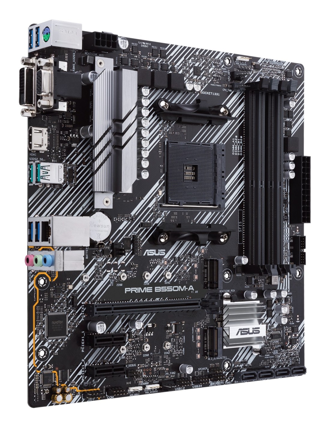 ASUS Prime B550M-A/CSM. Fabricante de procesador: AMD, Socket de procesador: Zócalo AM4, Procesador compatible: AMD Ryzen 3000 Series. tipos de memoria compatibles: DDR4-SDRAM, Memoria interna máxima: 128 GB, Tipo de ranuras de memoria: DIMM. Interfaces de disco de almacenamiento soportados: M.2, SATA III. Tipo de interfaz ethernet: Gigabit Ethernet, Controlador LAN: Realtek RTL8111H. Componente para: PC, Factor de forma: micro ATX, Familia del chipset: AMD