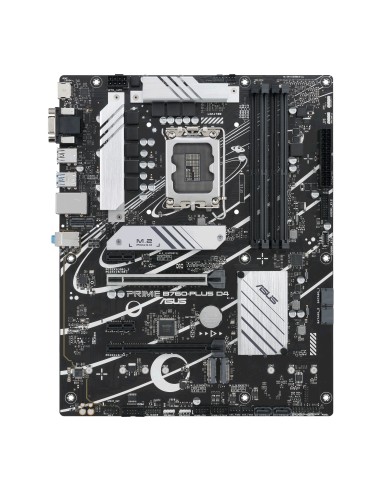 ASUS PRIME B760-PLUS D4. Fabricante de procesador: Intel, Socket de procesador: LGA 1700, Procesador compatible: Intel® Celeron®, Intel® Core™ i3, Intel® Core™ i5, Intel® Core™ i7, Intel® Core™ i9,.... tipos de memoria compatibles: DDR4-SDRAM, Memoria interna máxima: 128 GB, Tipo de ranuras de memoria: DIMM. Interfaces de disco de almacenamiento soportados: M.2, SATA III, Tipos de unidades de almacenamiento admitidas: HDD & SSD, Niveles RAID: 0, 1, 5, 10. Tipo de interfaz ethernet: 2.5 Gigabit Ethernet. Componente para: PC, Factor de forma: ATX, Familia del chipset: Intel