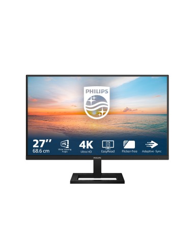 Philips 1000 series 27E1N1900AE/00. Diagonal de la pantalla: 68,6 cm (27"), Resolución de la pantalla: 3840 x 2160 Pixeles, Tipo HD: 4K Ultra HD, Tecnología de visualización: LCD, Tiempo de respuesta: 4 ms, Relación de aspecto nativa: 16:9, Ángulo de visión, horizontal: 178°, Ángulo de visión, vertical: 178°. Altavoces incorporados. Conector USB incorporado, Versión de conector USB: 3.2 Gen 1 (3.1 Gen 1). montaje VESA, Ajustes de altura. Color del producto: Negro