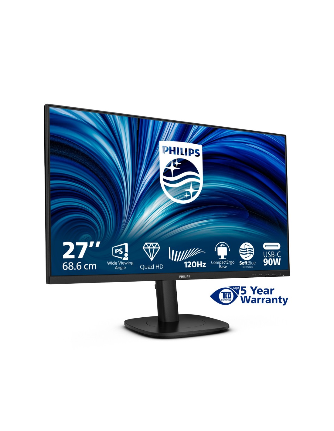 Philips 3000 series 27B2U3601/00. Diagonal de la pantalla: 68,6 cm (27"), Resolución de la pantalla: 2560 x 1440 Pixeles, Tipo HD: Quad HD, Tecnología de visualización: LCD, Tiempo de respuesta: 4 ms, Relación de aspecto nativa: 16:9, Ángulo de visión, horizontal: 178°, Ángulo de visión, vertical: 178°. Altavoces incorporados. Conector USB incorporado, Versión de conector USB: 3.2 Gen 1 (3.1 Gen 1). montaje VESA, Ajustes de altura. Color del producto: Negro