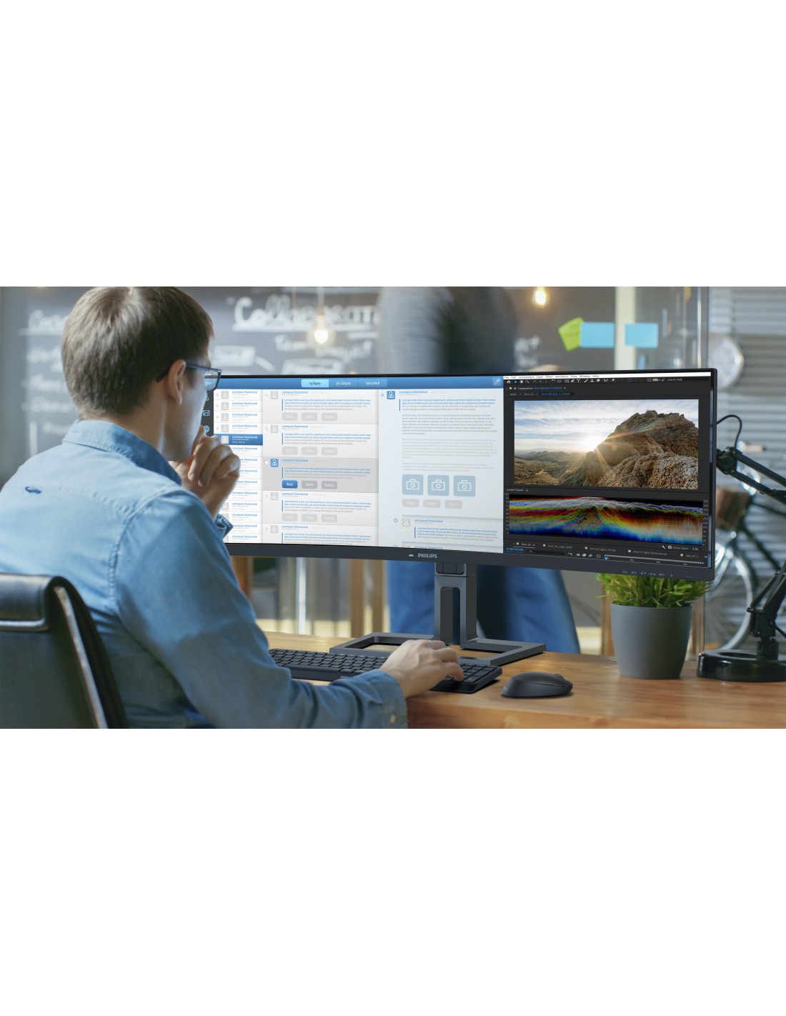 Philips 6000 series 45B1U6900C/00. Diagonal de la pantalla: 113 cm (44.5"), Resolución de la pantalla: 5120 x 1440 Pixeles, Tipo HD: UltraWide Dual Quad HD, Tecnología de visualización: LED, Tiempo de respuesta: 4 ms, Relación de aspecto nativa: 32:9, Ángulo de visión, horizontal: 178°, Ángulo de visión, vertical: 178°. Altavoces incorporados. Conector USB incorporado, Versión de conector USB: 3.2 Gen 1 (3.1 Gen 1). montaje VESA, Ajustes de altura. Color del producto: Negro