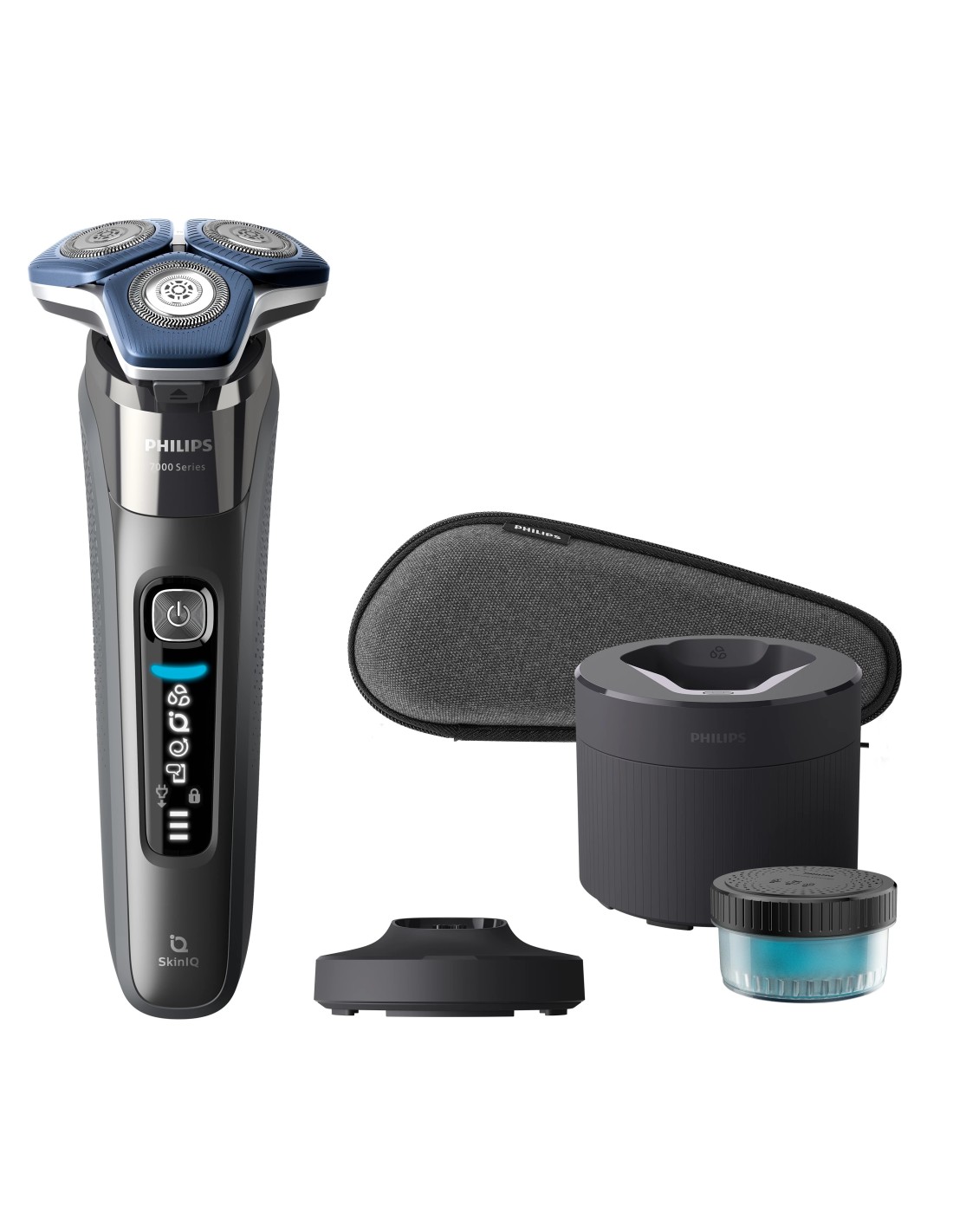 Afeitado más apurado* y protección avanzada de la piel con tecnología SkinIQ La serie 7000 de Philips se desliza suavemente sobre la piel, a la vez que corta cada pelo de forma apurada, incluso en barbas de 3 días. Equipada con la avanzada tecnología SkinIQ, la afeitadora detecta la barba, se adapta y te guía con los movimientos correctos para una mayor protección de la piel.