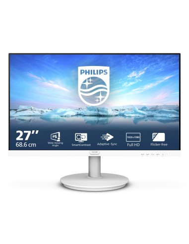 Philips V Line 271V8AW/00. Diagonal de la pantalla: 68,6 cm (27"), Resolución de la pantalla: 1920 x 1080 Pixeles, Tipo HD: Full HD, Tecnología de visualización: LCD, Tiempo de respuesta: 4 ms, Relación de aspecto nativa: 16:9, Ángulo de visión, horizontal: 178°, Ángulo de visión, vertical: 178°. Altavoces incorporados. montaje VESA. Color del producto: Blanco