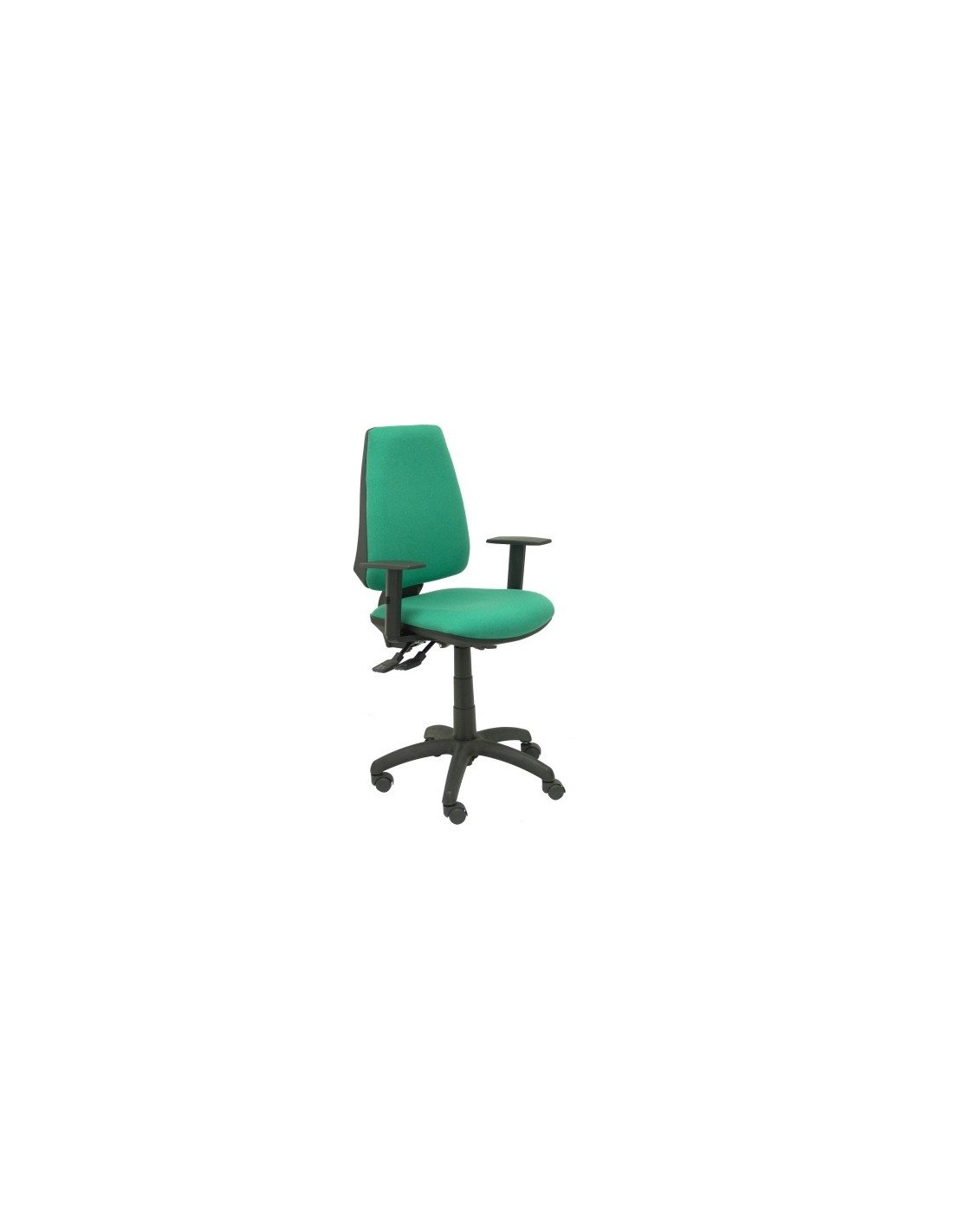 PIQUERAS Y CRESPO Modelo Elche S - Silla de oficina ergonómica con mecanismo sincro, regulable en altura y ruedas de nailon - Asiento y respaldo tapizados en tejido BALI color verde esmeralda (BRAZOS REGULABLES EN ALTURA)