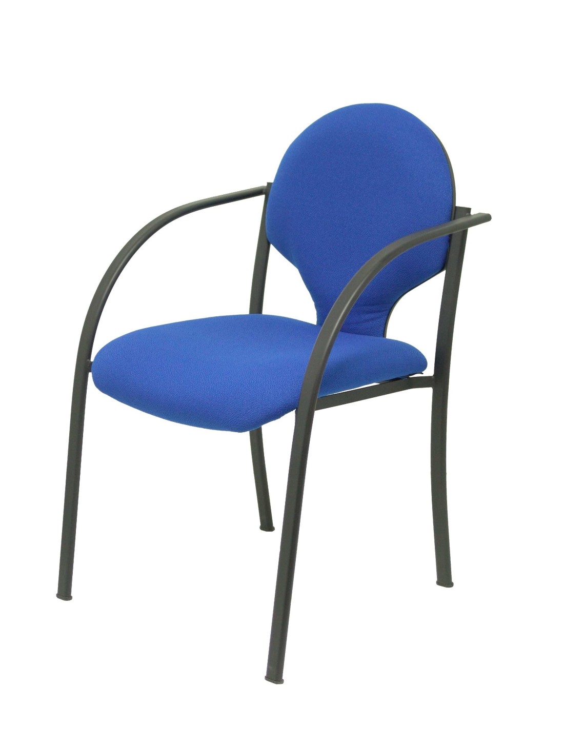 Piqueras y Crespo Modelo Hellin Pack de 2 sillas confidente ergonómica con brazos fijos incorporados, apilable y estructura en color negro Asiento y respaldo tapizados en tejido BALI color azul.