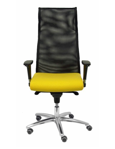 PIQUERAS Y CRESPO Modelo Sahúco XL - Sillón de dirección ergonómico con mecanismo sincro y regulable en altura, especial para personas de envergadura (hasta 160 kgs) - Asiento tapizado en tejido BALI color amarillo (CON ESPUMA VISCOELÁSTICA) y respaldo en malla transpirable.