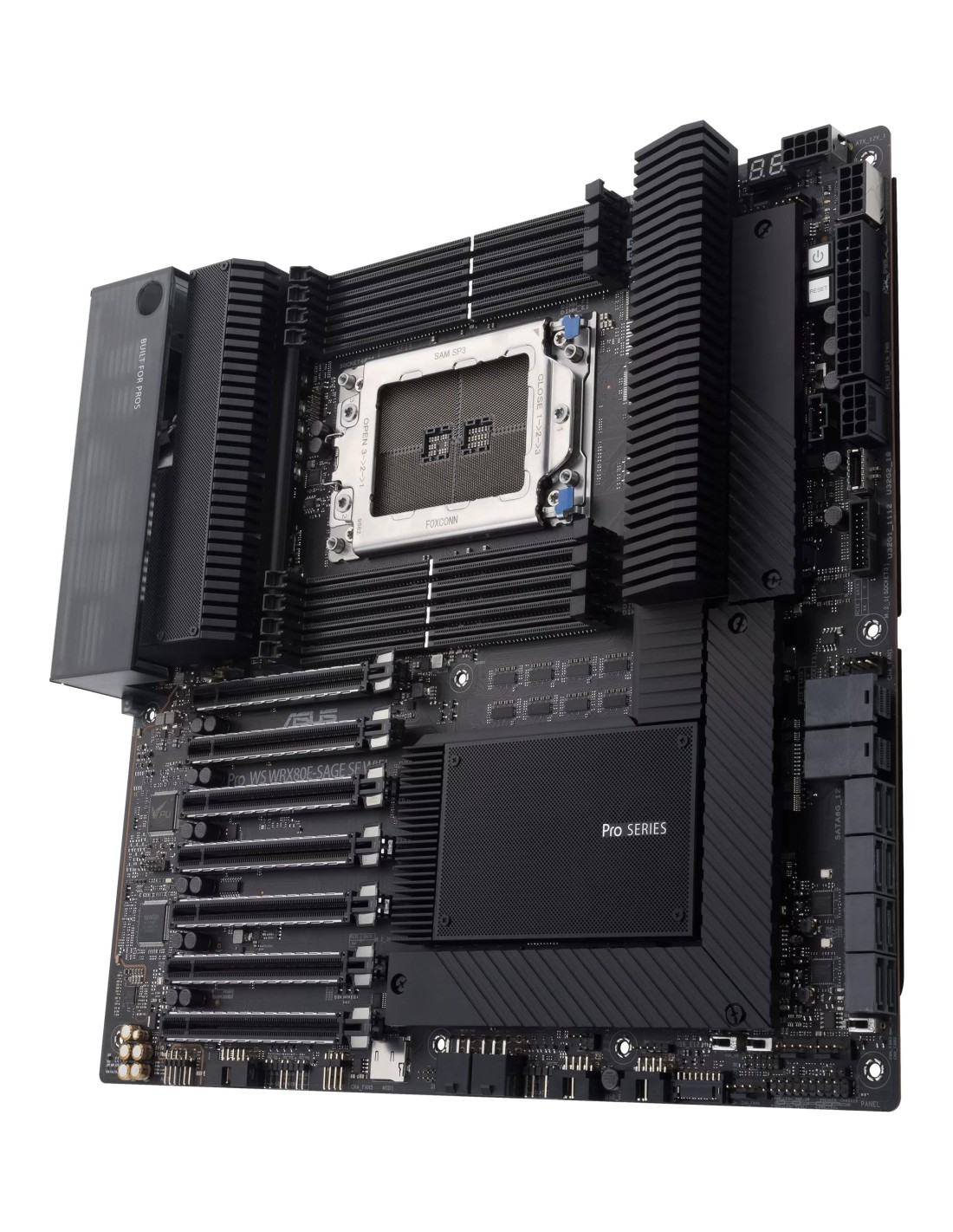 ASUS WRX80E-SAGE SE WIFI. Fabricante de procesador: AMD, Socket de procesador: Socket SP3, Procesador compatible: AMD Ryzen Threadripper PRO 3000 WX-Series. tipos de memoria compatibles: DDR4-SDRAM, Memoria interna máxima: 2,05 TB, Tipo de ranuras de memoria: DIMM. Interfaces de disco de almacenamiento soportados: SATA III, Niveles RAID: 0, 1, 5, 10. Soporte para proceso paralelo: 2-Way SLI, 3-Way SLI, 4-Way SLI. Tipo de interfaz ethernet: 10 Gigabit Ethernet, Controlador LAN: Intel X550-T2, Estándar Wi-Fi: Wi-Fi 6 (802.11ax)
