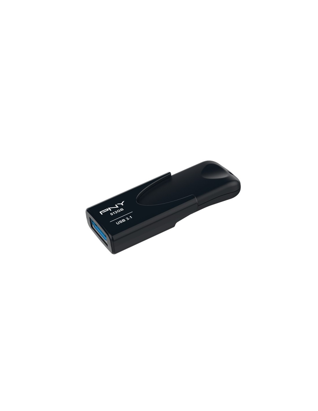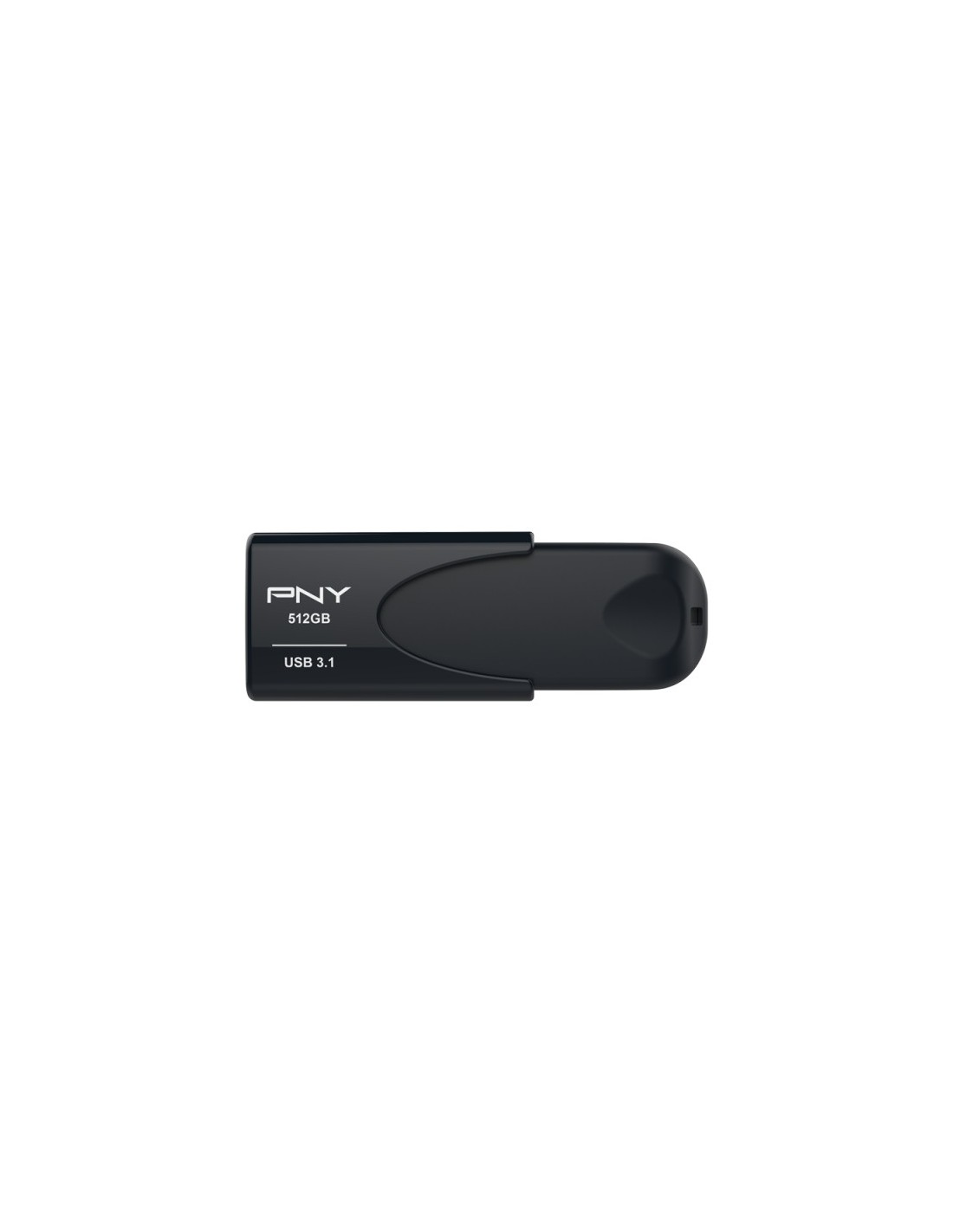 PNY Attache 4. Capacidad: 512 GB, Interfaz del dispositivo: USB tipo A, Versión USB: 3.2 Gen 1 (3.1 Gen 1), Velocidad de lectura: 80 MB/s, Velocidad de escritura: 20 MB/s. Factor de forma: Sin tapa, Color del producto: Negro