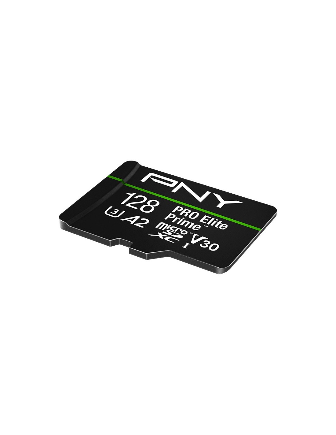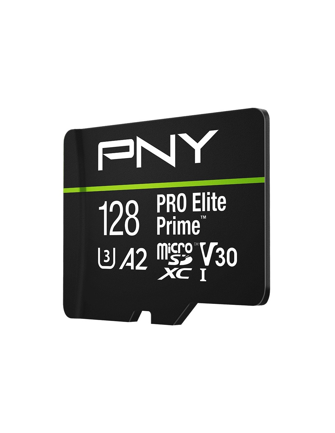 PNY PRO Elite Prime. Capacidad: 128 GB, Tipo de tarjeta flash: MicroSDXC, Clase de memoria flash: Clase 10, Tipo de memoria interna: UHS-I, Velocidad de lectura: 200 MB/s, Velocidad de escritura: 110 MB/s, Clase de velocidad UHS: Class 3 (U3), Clase de velocidad de vídeo: V30. Color del producto: Negro