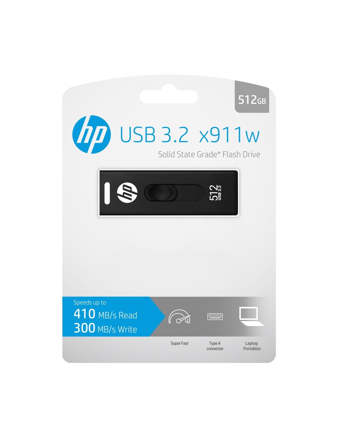 PNY x911w. Capacidad: 512 GB, Interfaz del dispositivo: USB tipo A, Versión USB: 3.2 Gen 1 (3.1 Gen 1), Velocidad de lectura: 410 MB/s, Velocidad de escritura: 300 MB/s. Factor de forma: Deslizar. Peso: 15,6 g. Color del producto: Negro