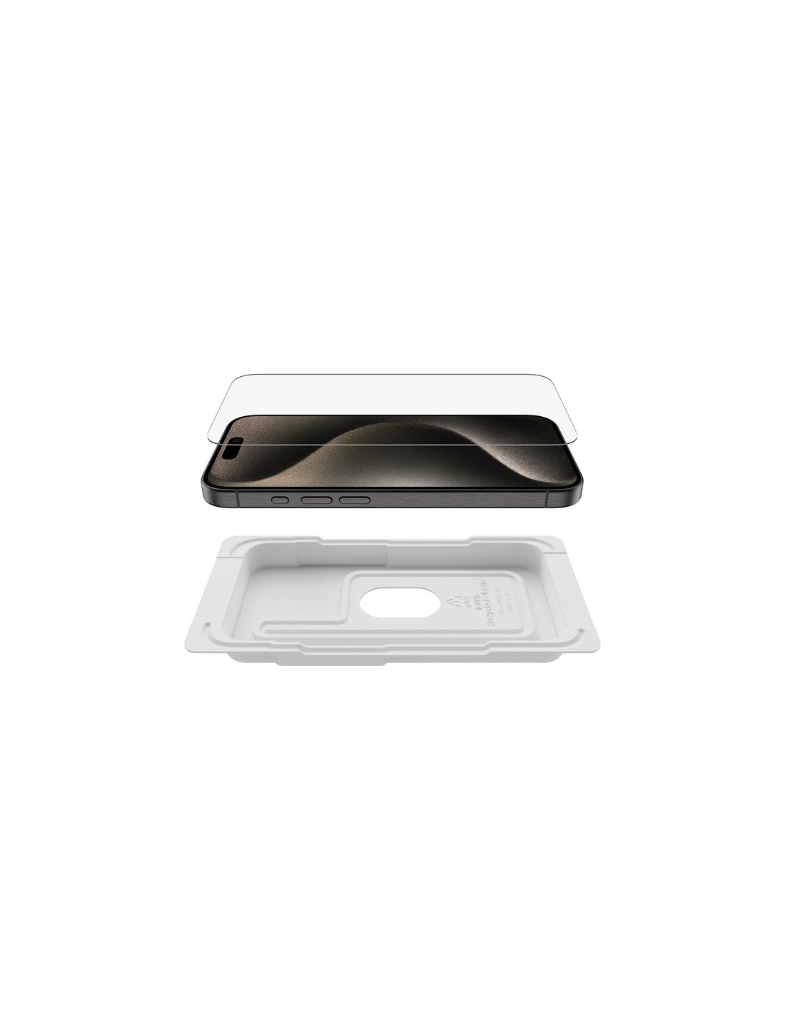 Belkin ScreenForce. Marca compatible: Apple, Compatibilidad: iPhone 15 Pro. Material: Vidrio templado, Color del producto: Translúcido. Cantidad por paquete: 1 pieza(s)