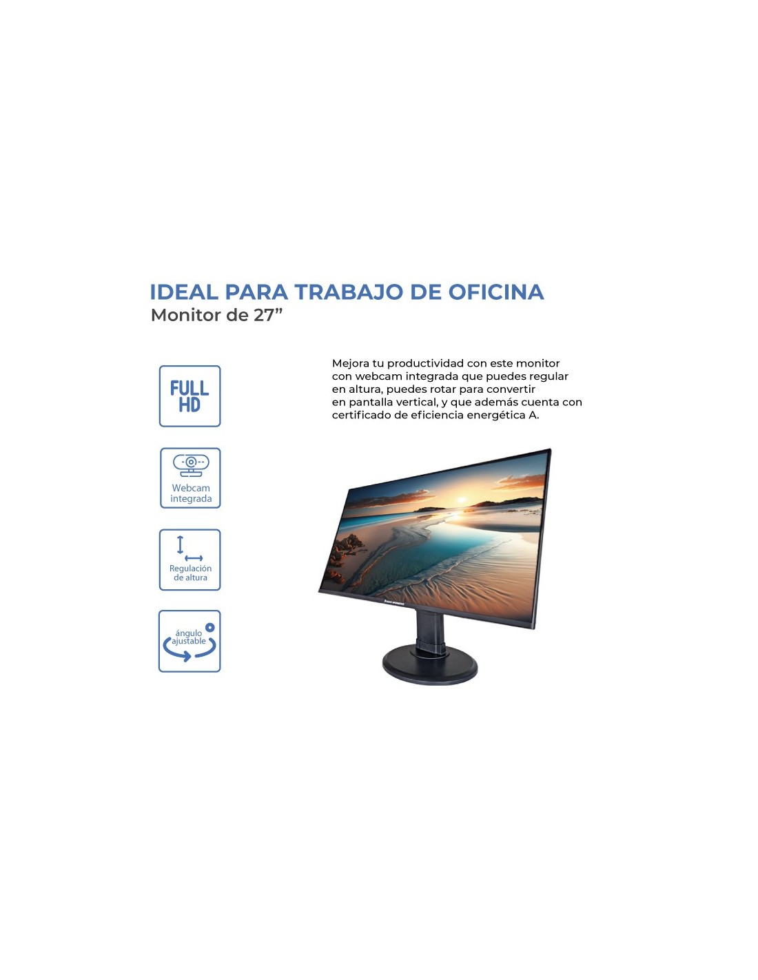 Dado que es un monitor con unas prestaciones pensadas para satisfacer las exigencias del trabajo diario de oficina, este monitor de calidad Full HD está pensado para oficinistas, estudiantes, autónomos e incluso profesionales más exigentes ya que además dispone de Webcam integrada para facilitar la comunicación por videoconferencia.