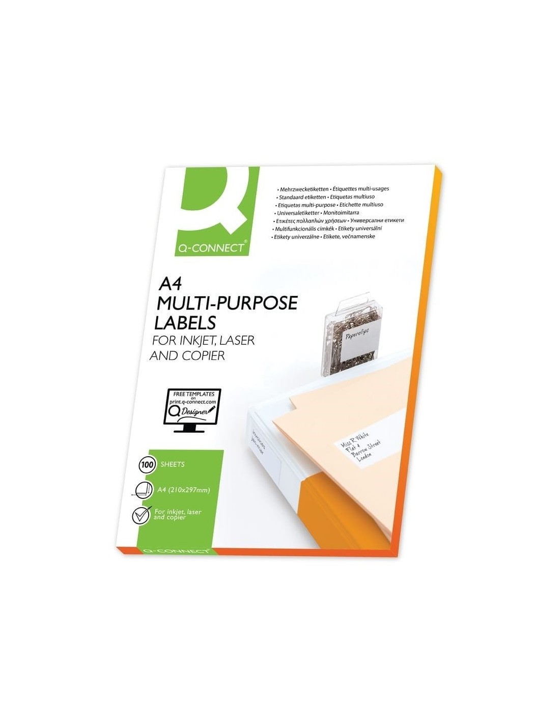 Q-CONNECT KF10660. Anchura de etiqueta: 10,5 cm, Altura de etiqueta: 14,8 cm. Cantidad por paquete: 100 pieza(s). Etiquetas por paquete: 400 pieza(s), Etiquetas por hoja: 4 pieza(s)