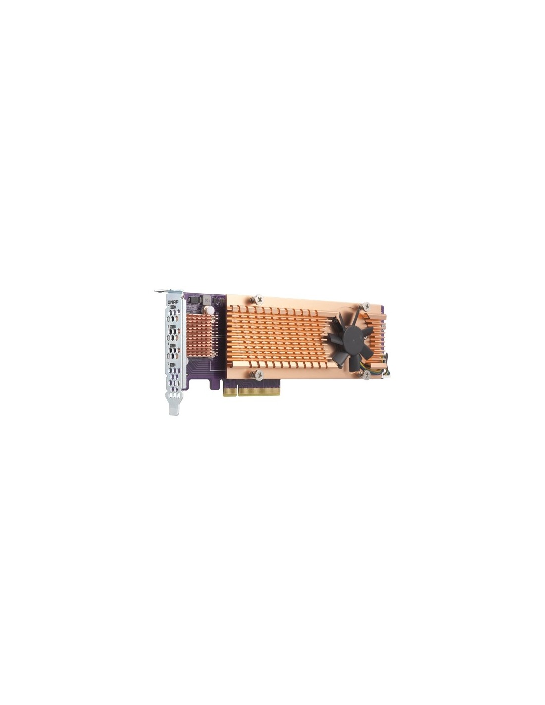 QNAP QM2-4P-384. Interfaz de host: PCIe, Interfaz de salida: PCIe, Estándar de la tarjeta de expansión: PCIe 3.0. Tipo de enfriamiento: Activo, Número de ventiladores: 1 Ventilador(es). Ancho: 68,9 mm, Profundidad: 204,9 mm, Altura: 20,6 mm