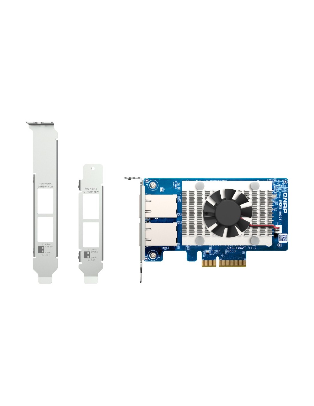 QNAP QXG-10G2T. Interno. Tecnología de conectividad: Alámbrico, Interfaz de host: PCI Express, Interfaz: Ethernet. Rango máximo de transferencia de datos: 10000 Mbit/s. Color del producto: Verde