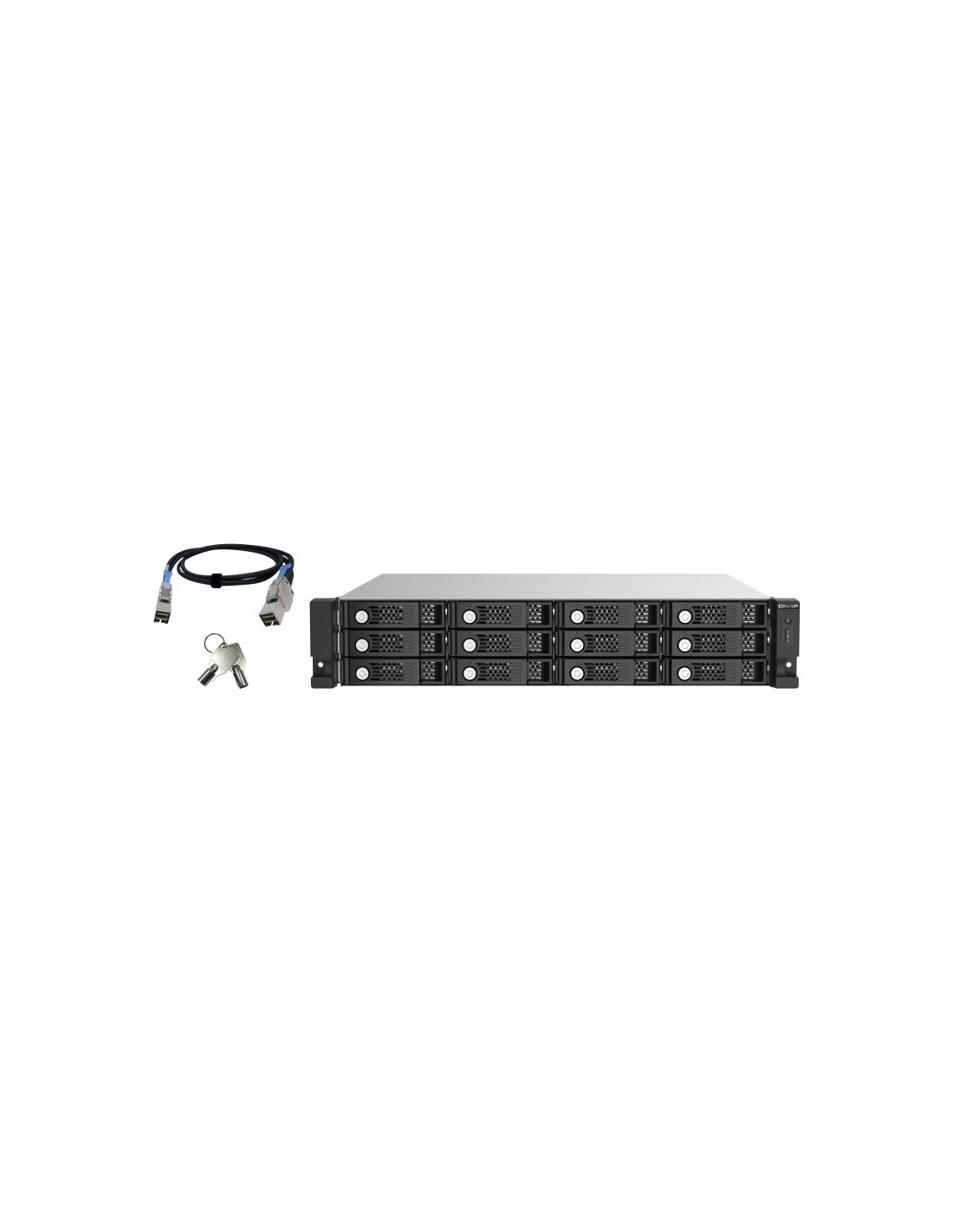 QNAP TL-R1220Sep-RP. Tipo de producto: Carcasa de disco duro/SSD. Número de unidades de almacenamiento compatibles: 12, Tamaño de la unidad de almacenamiento: 2.5/3.5", Interfaces de disco de almacenamiento soportados: SAS-3, Serial ATA III. Velocidad de transferencia de datos: 12 Gbit/s. Hot-swap. Montaje en rack, Capacidad del rack: 2U, Color del producto: Negro, Gris