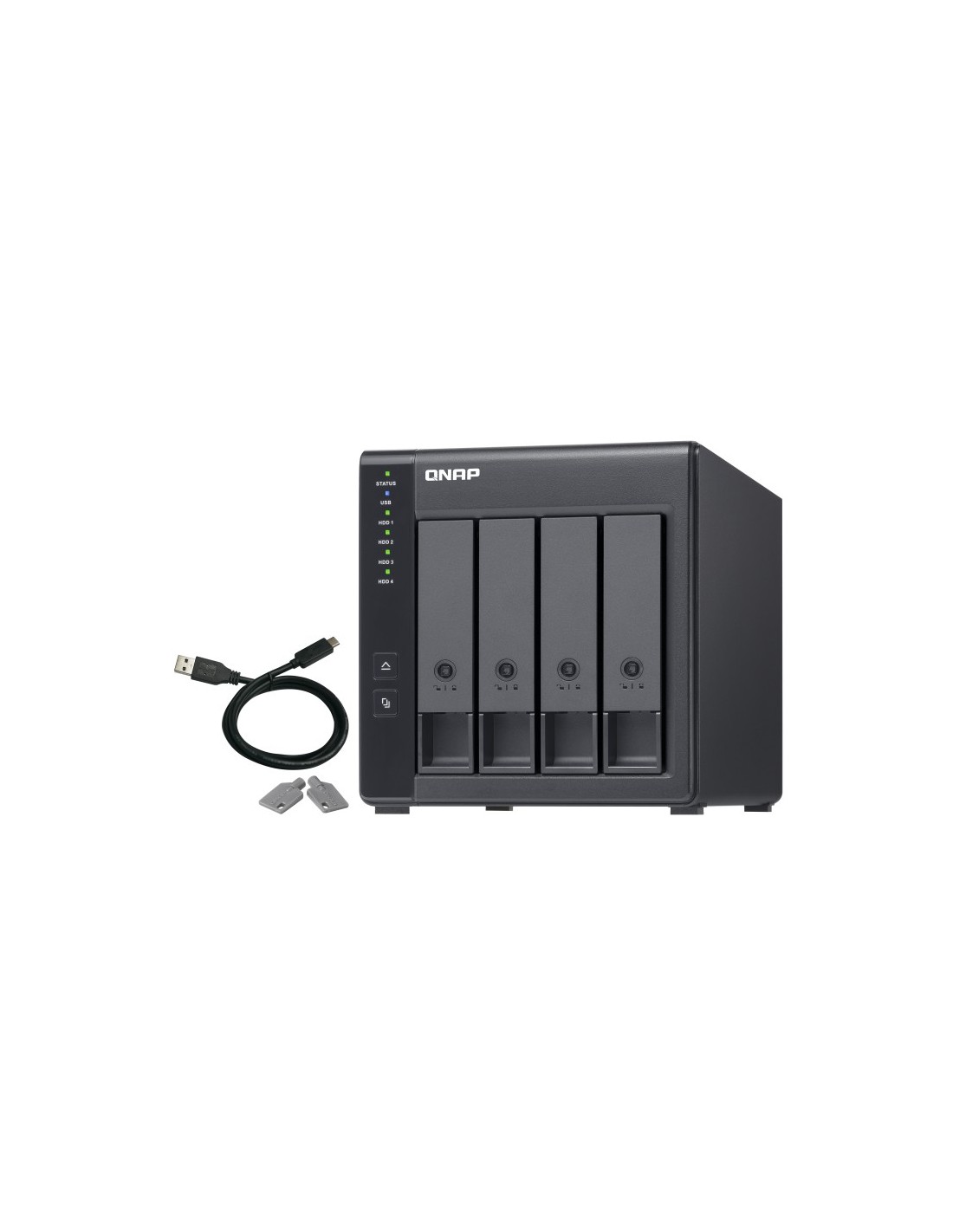 QNAP TR-004. Tipo de producto: Carcasa de disco duro/SSD. Número de unidades de almacenamiento compatibles: 4, Tamaño de la unidad de almacenamiento: 2.5/3.5", Interfaces de disco de almacenamiento soportados: Serial ATA II, Serial ATA III. Velocidad de transferencia de datos: 3 Gbit/s. Niveles RAID: 0, 1, 5, 10, JBOD, Hot-swap. Color del producto: Negro. Conector USB: USB Tipo C