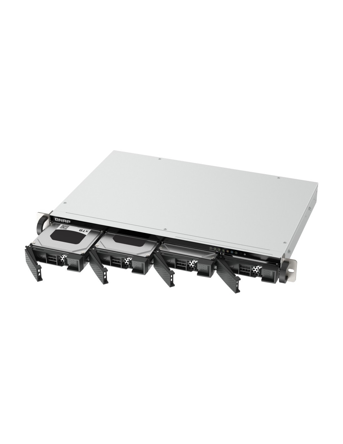 QNAP TS-433eU. Tipo: NAS. Tipo de chasis: Bastidor (1U). Clase del dispositivo: Pequeñas y medianas empresas. Familia de procesador: Cortex-A, Modelo del procesador: Cortex-A55, Frecuencia del procesador: 2 GHz. Memoria interna: 4 GB. Capacidad de almacenamiento total instalado: 0 TB. Sistema operativo instalado: QNAP Turbo System