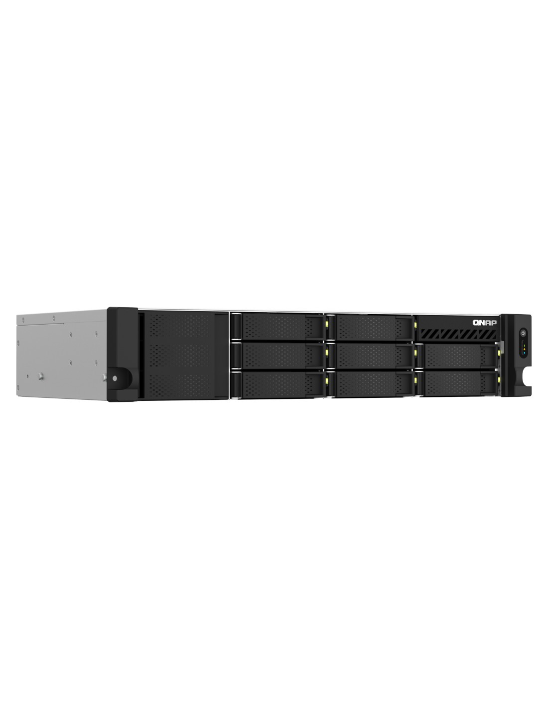 QNAP TS-873AeU-RP. Tipo: NAS. Tipo de chasis: Bastidor (2U). Clase del dispositivo: Pequeñas y medianas empresas. Familia de procesador: Ryzen Embedded, Modelo del procesador: V1500B, Frecuencia del procesador: 2,2 GHz. Memoria interna: 4 GB, Tipo de memoria interna: DDR4. Capacidad de almacenamiento total instalado: 0 TB. Sistema operativo instalado: QuTS hero