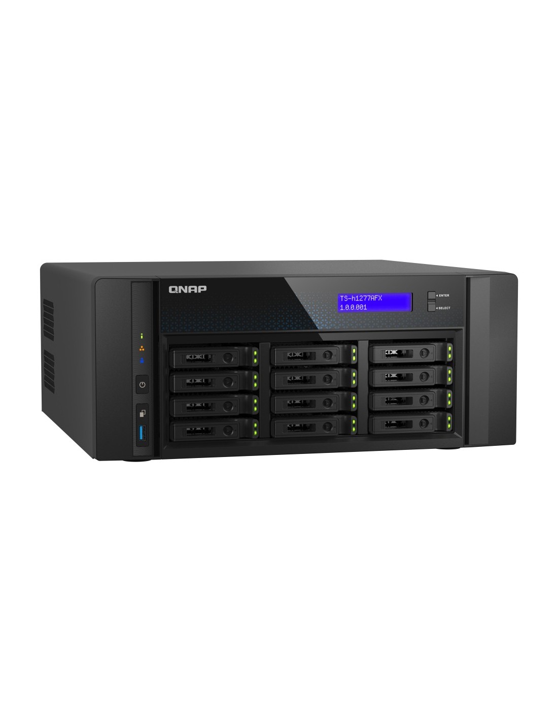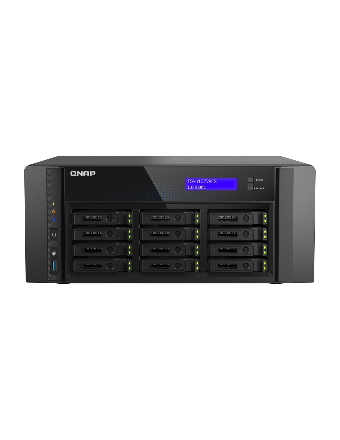 QNAP TS-H1277AFX-R7-32G. Tipo: NAS. Tipo de chasis: Torre. Clase del dispositivo: Pequeñas y medianas empresas. Familia de procesador: AMD Ryzen™ 7, Frecuencia del procesador: 3,8 GHz. Memoria interna: 32 GB, Tipo de memoria interna: DDR5. Capacidad de almacenamiento total instalado: 0 TB. Sistema operativo instalado: QuTS hero