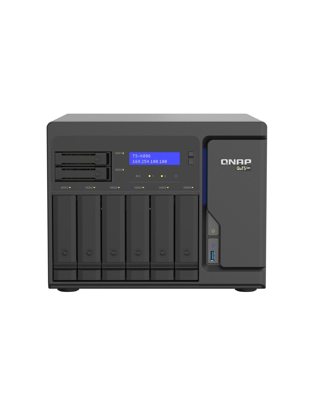 QNAP TS-h886. Tipo: NAS. Tipo de chasis: Torre. Clase del dispositivo: Usuarios domésticos. Familia de procesador: Intel® Xeon® D, Modelo del procesador: D-1602, Frecuencia del procesador: 2,6 GHz. Memoria interna: 8 GB, Tipo de memoria interna: DDR4. Capacidad de almacenamiento total instalado: 0 TB. Sistema operativo instalado: QuTS hero