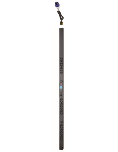 APC AP8659EU3. PDU tipos: Regulado, Metered-by-outlet, Conmutado, Capacidad del rack: 0U, Montaje: Vertical. Cantidad de salidas AC: 24 salidas AC, Tipo de salida AC: C13 acoplador, C19 acoplador, Conector: IEC309. Longitud de cable: 3 m. Monitoreo: Corriente, Poder, Tensión, Salida de control: Bloqueo, Reciclaje, Apagar, Encender. Voltaje nominal de entrada: 200-230 V, Frecuencia de entrada AC: 50 - 60 Hz, Voltaje nominal de salida: 230 V