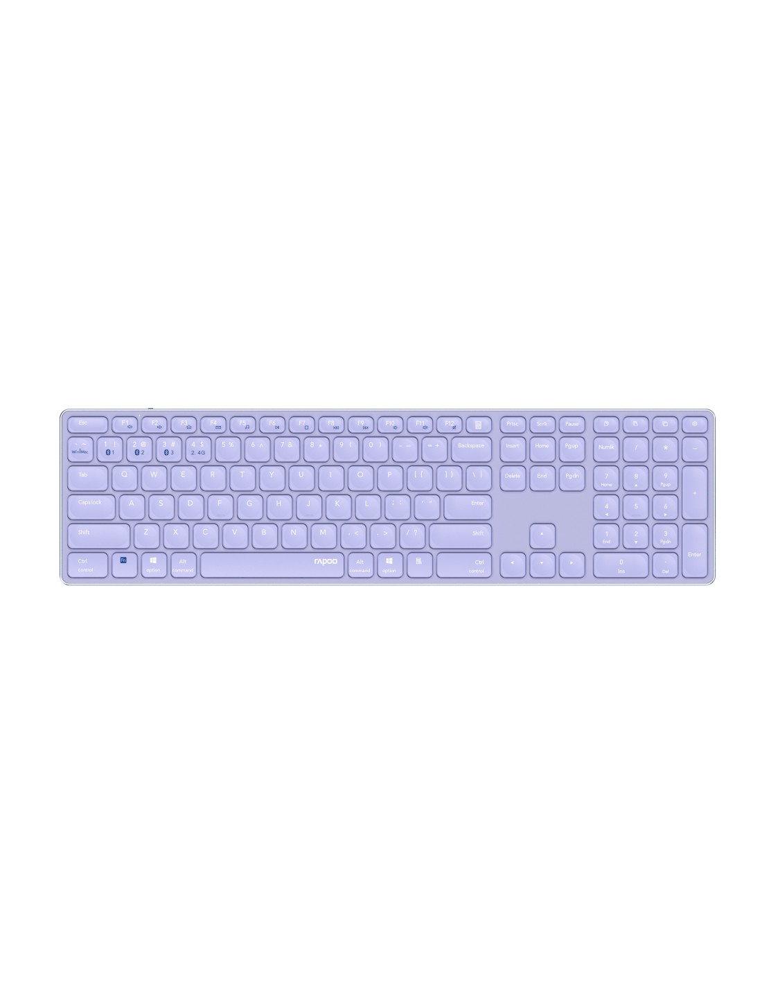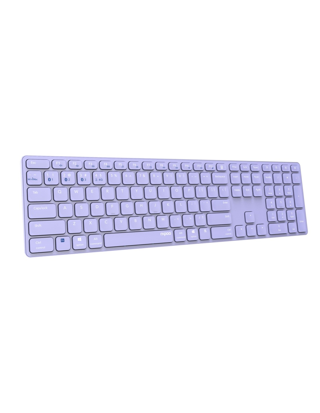 Rapoo E9800M. Formato del teclado: Completo (100%). Estilo de teclado: Derecho. Tecnología de conectividad: Inalámbrico, Interfaz del dispositivo: Bluetooth, Diseño de teclado: QWERTY, Uso recomendado: Universal. Color del producto: Púrpura