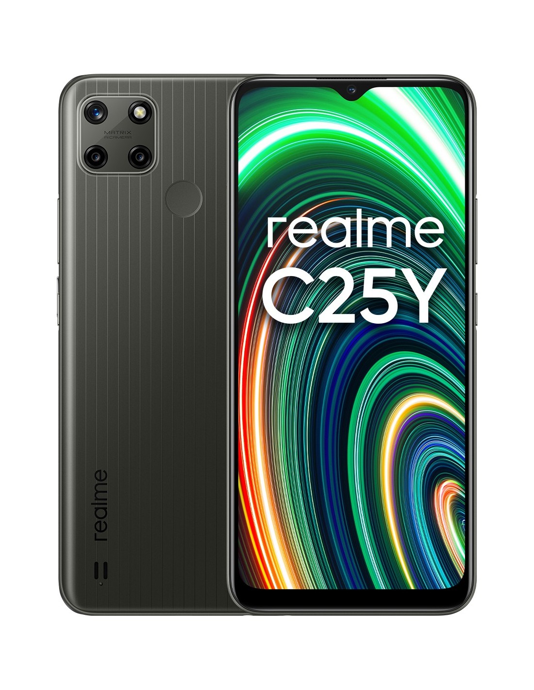 realme C C25Y. Diagonal de la pantalla: 16,5 cm (6.5"), Resolución de la pantalla: 720 x 1600 Pixeles. Familia de procesador: Unisoc, Modelo del procesador: T618. Capacidad de RAM: 4 GB, Tipo de RAM: LPDDR4X, Capacidad de almacenamiento interno: 128 GB. Resolución de la cámara trasera (numérica): 50 MP, Tipo de cámara trasera: Triple cámara. Capacidad de la tarjeta SIM: SIM doble. Sistema operativo instalado: Android 11. Capacidad de batería: 5000 mAh. Color del producto: Gris. Peso: 200 g