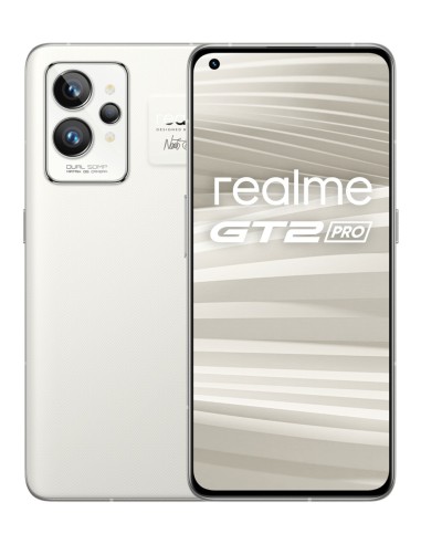 realme GT 2 Pro . Diagonal de la pantalla: 17 cm (6.7"), Resolución de la pantalla: 3216 x 1440 Pixeles. Familia de procesador: Qualcomm Snapdragon, Modelo del procesador: 8 Gen 1. Capacidad de RAM: 12 GB, Tipo de RAM: LPDDR5, Capacidad de almacenamiento interno: 256 GB. Resolución de la cámara trasera (numérica): 50 MP, Tipo de cámara trasera: Triple cámara. Capacidad de la tarjeta SIM: SIM doble. Sistema operativo instalado: Android 12. Capacidad de batería: 5000 mAh. Color del producto: Blanco. Peso: 199 g