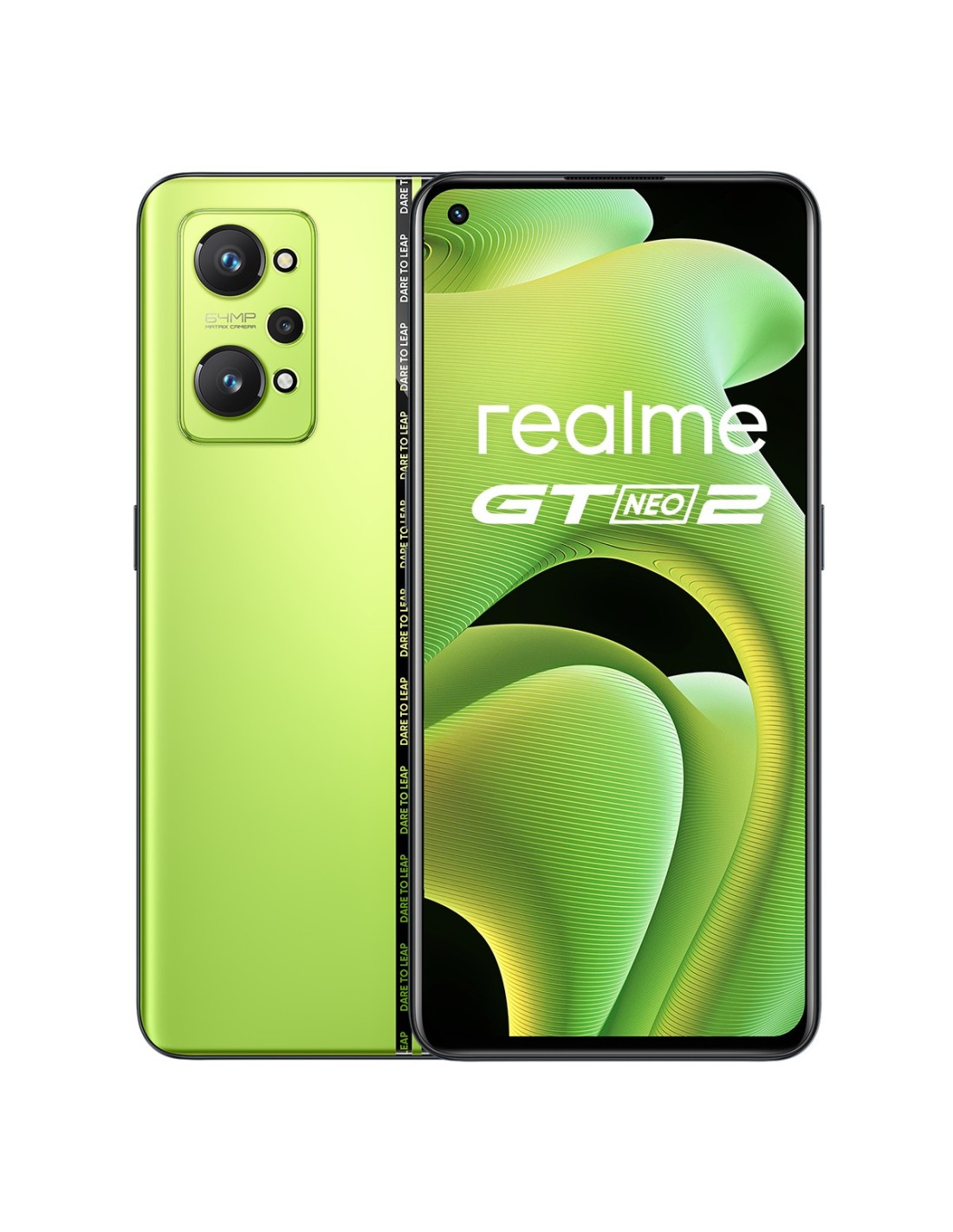 realme GT Neo 2. Diagonal de la pantalla: 16,8 cm (6.62"), Resolución de la pantalla: 2400 x 1800 Pixeles. Familia de procesador: Qualcomm Snapdragon, Modelo del procesador: 870. Capacidad de RAM: 12 GB, Capacidad de almacenamiento interno: 256 GB. Resolución de la cámara trasera (numérica): 64 MP, Tipo de cámara trasera: Triple cámara. Capacidad de la tarjeta SIM: SIM doble. Sistema operativo instalado: Android 11. Capacidad de batería: 5000 mAh. Color del producto: Verde. Peso: 199,8 g