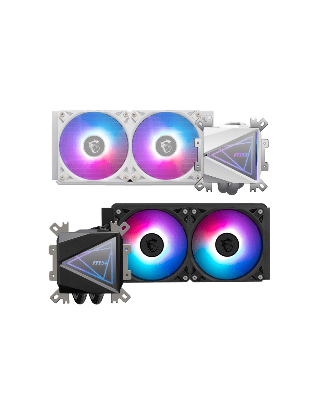 MSI MAG Coreliquid I240. Tipo: Sistema de refrigeración líquida todo en uno, Diámetro de ventilador: 12 cm, Tipo de soporte: Tecnología Loop Dynamic Bearing (LDB). Ancho: 69,1 mm, Profundidad: 74 mm, Altura: 62,5 mm. Color del producto: Negro
