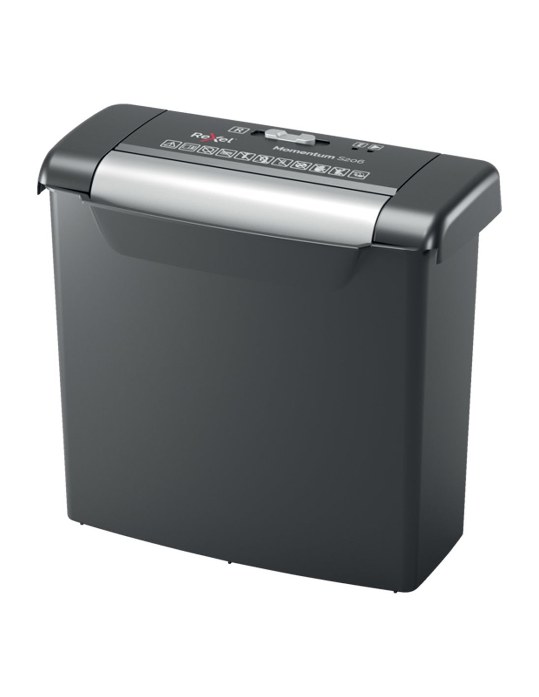 Rexel Momentum S206. Tipo de triturador de papel: Corte en tiras, Tamaño de trituración de papel: 6 mm, Capacidad de la cesta: 9 L. Ancho: 319 mm, Profundidad: 156 mm, Altura: 288 mm