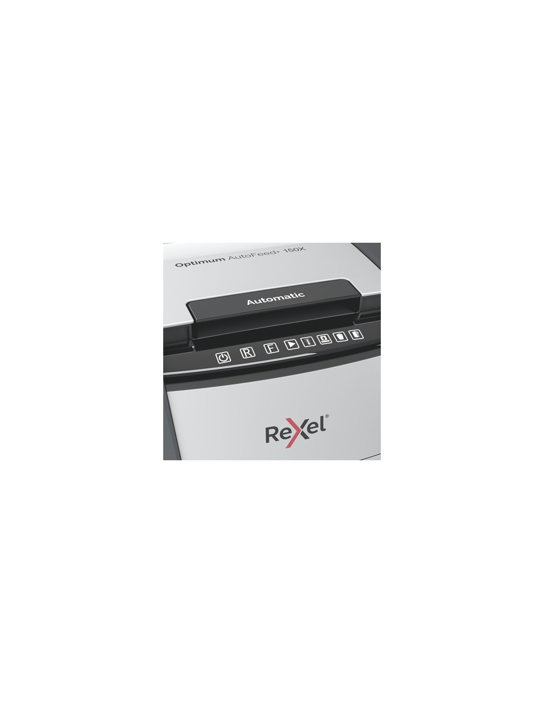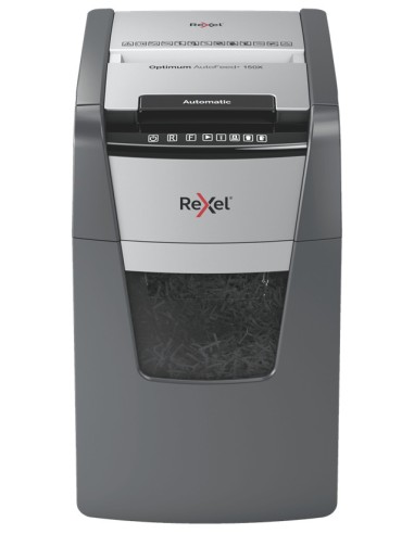 Rexel Optimum AutoFeed+ 150X A. Tipo de triturador de papel: Corte cruzado, Ancho de trabajo: 22 cm, Tamaño de trituración de papel: 4 x 28 mm. Ancho: 440 mm, Profundidad: 505 mm, Altura: 690 mm