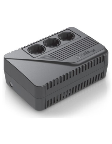 Riello iPlug SE. Topología UPS: Línea interactiva, Capacidad de potencia de salida (VA): 0,6 kVA, Forma de onda: Pseudo sine. Tipo de salida AC: Tipo F, Cantidad de salidas AC: 3 salidas AC. Tecnología de batería: Sealed Lead Acid (VRLA), Tiempo de recarga de la batería: 8 h. Factor de forma: Torre, Color del producto: Negro. Certificados de conformidad: CE, Certificación: CE