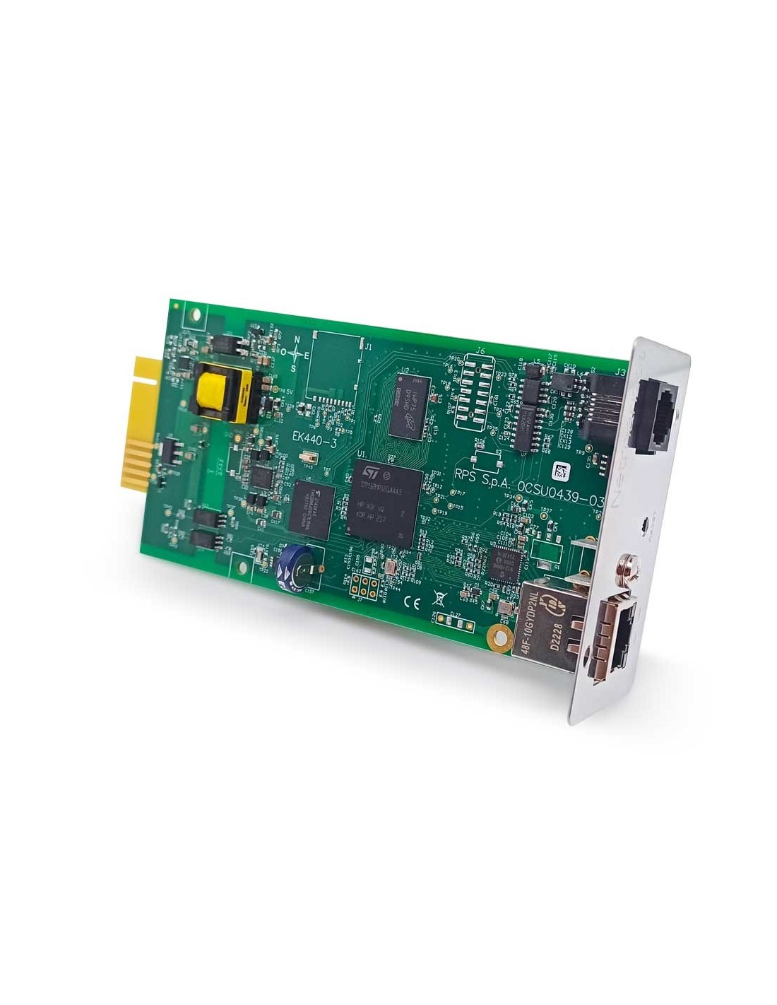 La tarjeta de red NetMan 208 de Riello UPS permite que el SAI conectado en LAN 10/100/1000 Mb se gestione mediante los protocolos TCP / IP, HTTP y SNMP.