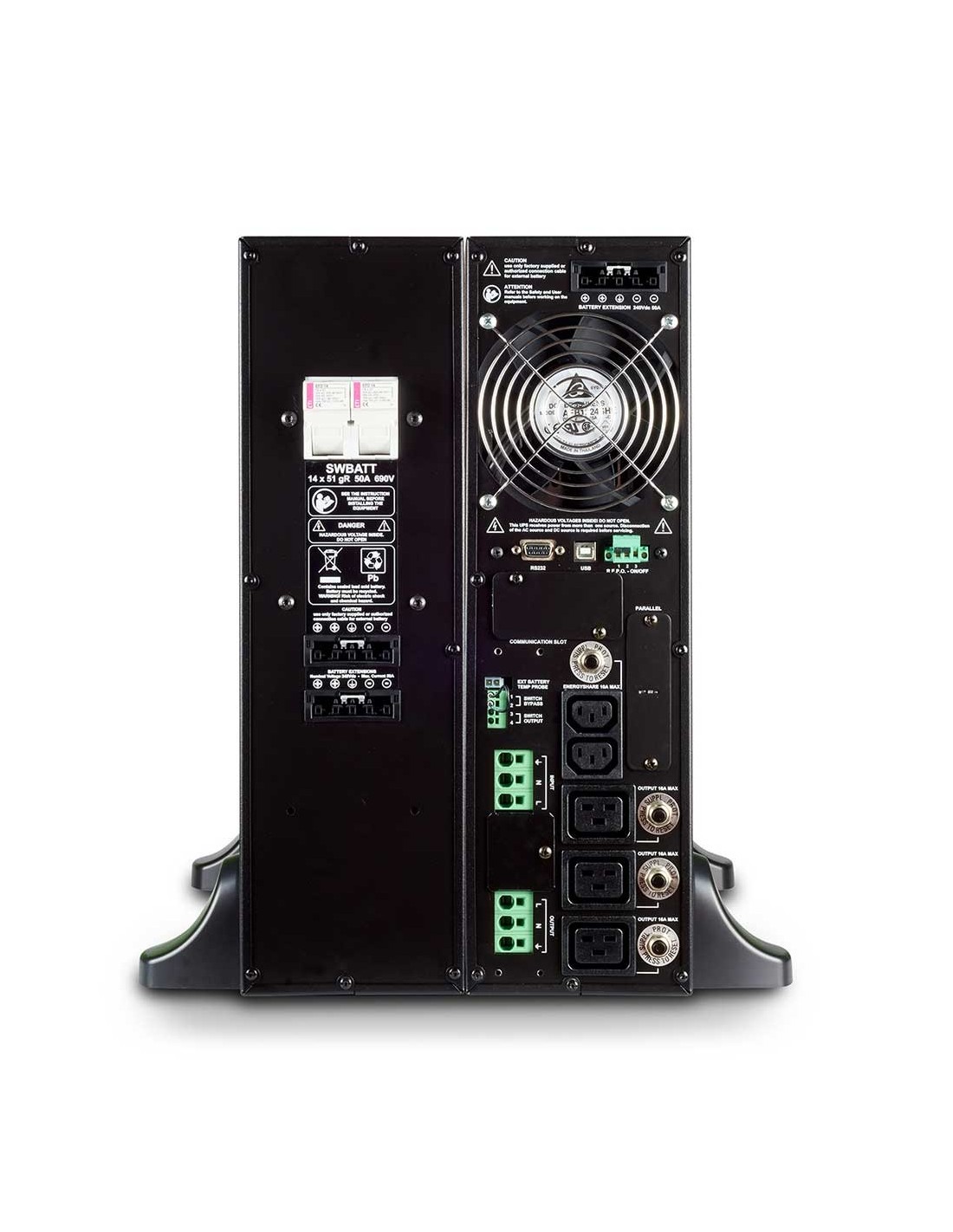 Riello Sentinel Dual SDU. Topología UPS: Doble conversión (en línea), Capacidad de potencia de salida (VA): 6 kVA, Potencia de salida: 6000 W. Tipo de salida AC: C19 acoplador, IEC 320, Terminal, Cantidad de salidas AC: 2 salidas AC, Tipo de serie de interfaz: RS-232. Tecnología de batería: Sealed Lead Acid (VRLA). Factor de forma: Montaje en rack/Torre o Montaje en bastidor/Torre, Color del producto: Negro, Plata, Capacidad del rack: 3U. Certificación: EN 62040-2, 2014/30/EU