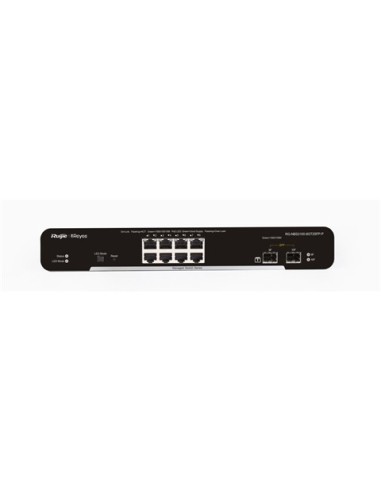 Ruijie Networks RG-NBS3100-8GT2SFP-P. Tipo de interruptor: Gestionado, Capa del interruptor: L2. Puertos tipo básico de conmutación RJ-45 Ethernet: Gigabit Ethernet (10/100/1000), Cantidad de puertos básicos de conmutación RJ-45 Ethernet: 8, Número de módulos SFP instalados: 2. Tabla de direcciones MAC: 8000 entradas, Capacidad de conmutación: 20 Gbit/s. Estándares de red: IEEE 802.1D, IEEE 802.1s, IEEE 802.1w. Energía sobre Ethernet (PoE)