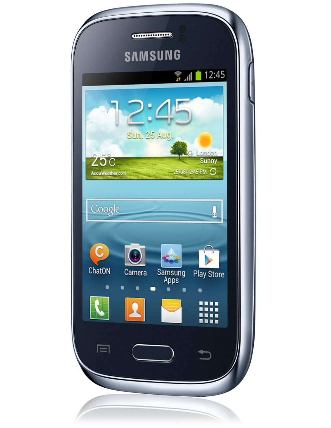 Samsung Galaxy Young GT-S6310. Diagonal de la pantalla: 8,31 cm (3.27"), Resolución de la pantalla: 480 x 320 Pixeles. Frecuencia del procesador: 1 GHz, Familia de procesador: Qualcomm, Modelo del procesador: MSM 7227A. Capacidad de RAM: 0,75 GB, Capacidad de almacenamiento interno: 4 GB. Resolución de la cámara trasera (numérica): 3 MP, Tipo de cámara trasera: Cámara única. Sistema operativo instalado: Android 4.1. Capacidad de batería: 1300 mAh. Color del producto: Azul. Peso: 112 g