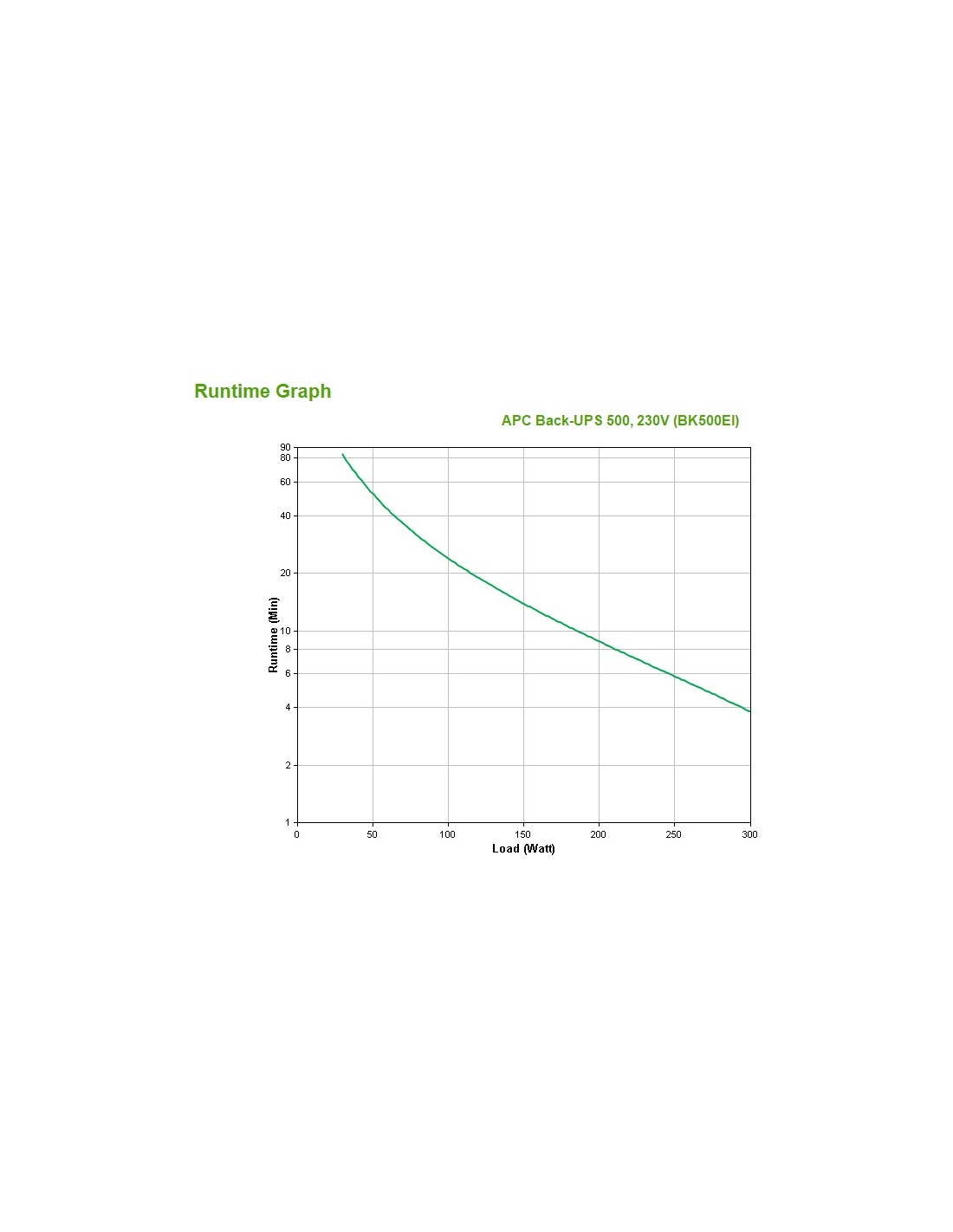 APC Back-UPS. Topología UPS: En espera (Fuera de línea) o Standby (Offline), Capacidad de potencia de salida (VA): 0,5 kVA, Potencia de salida: 300 W. Tipo de salida AC: C13 acoplador, Conector: C14 acoplador, Cantidad de salidas AC: 4 salidas AC. Tecnología de batería: Sealed Lead Acid (VRLA), Capacidad de la batería: 7 Ah, Capacidad de la batería: 83 VAh. Factor de forma: Torre, Color del producto: Beige, Longitud de cable: 1,83 m. Certificados de conformidad: RoHS, Certificación: C-tick, CE, EN 50091-1, EN 50091-2, GOST, VDE, REACH