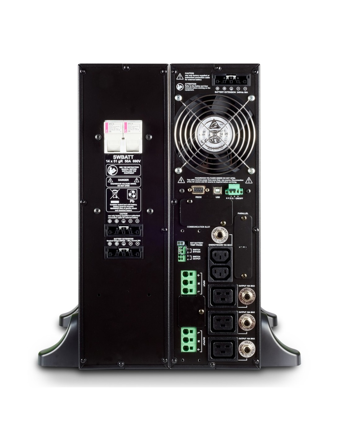 Riello Sentinel Dual 10000. Topología UPS: Doble conversión (en línea), Capacidad de potencia de salida (VA): 10 kVA, Potencia de salida: 10000 W. Tipo de salida AC: C13 acoplador, C20 acoplador, Cantidad de salidas AC: 5 salidas AC. Tecnología de batería: Sealed Lead Acid (VRLA), Tiempo de recarga de la batería: 6 h. Factor de forma: Montaje en rack o Montaje en bastidor, Color del producto: Negro, Plata, Capacidad del rack: 3U. Certificación: EN 62040-1:2008, EN 62040-1/EC:2009, EN 62040-1/A1:2013, Directive 2014/35/EU, EN 62040-2,...
