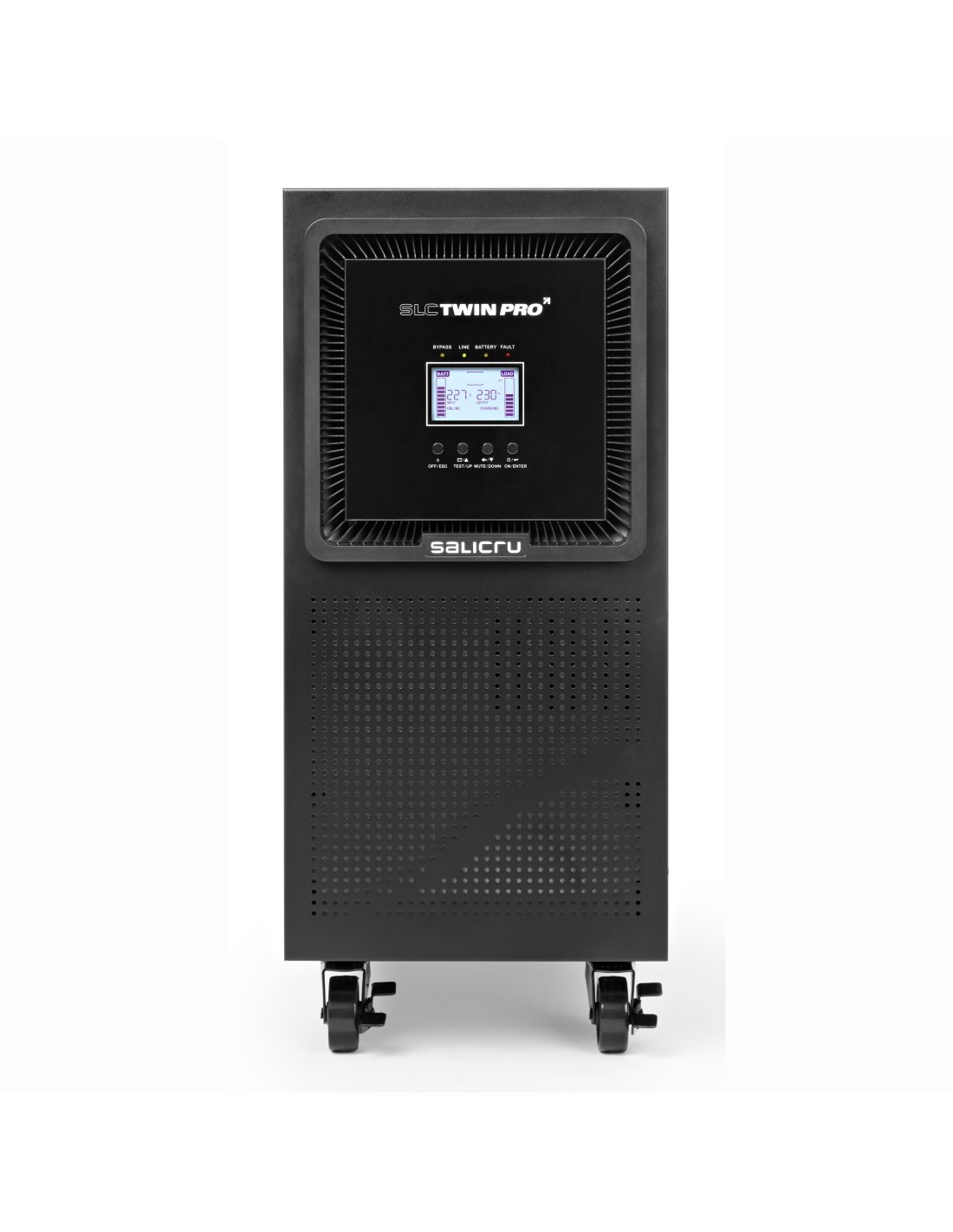 Salicru SLC-10000-TWIN PRO2. Topología UPS: Doble conversión (en línea), Capacidad de potencia de salida (VA): 10 kVA, Potencia de salida: 10000 W. Tipo de salida AC: C13 acoplador, Cantidad de salidas AC: 2 salidas AC, Tipo de serie de interfaz: RS-232. Tecnología de batería: Plomo-Calcio (Pb-Ca), Tiempo de recarga de la batería: 7 h. Factor de forma: Torre, Color del producto: Negro, Tipo de enfriamiento: Activo. Seguridad: EN 62040-1; EN 60950-1