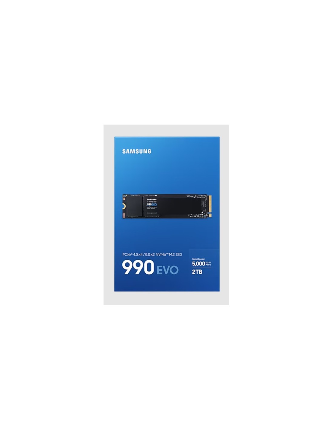 Samsung 990 EVO. SDD, capacidad: 2 TB, Factor de forma de disco SSD: M.2, Velocidad de lectura: 5000 MB/s, Velocidad de escritura: 4200 MB/s, Componente para: Universal