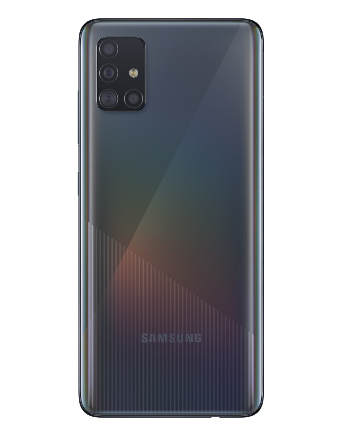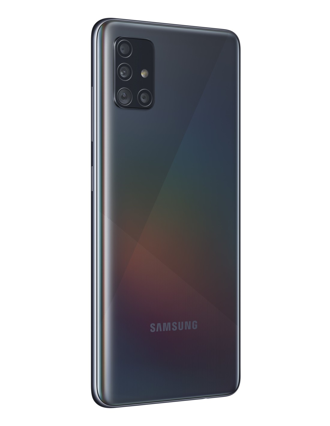 Samsung Galaxy A51 SM-A515F. Diagonal de la pantalla: 16,5 cm (6.5"), Resolución de la pantalla: 1080 x 2400 Pixeles. Frecuencia del procesador: 2,3 GHz. Capacidad de RAM: 4 GB, Capacidad de almacenamiento interno: 128 GB. Resolución de la cámara trasera (numérica): 48 MP, Tipo de cámara trasera: Cámara cuádruple. Capacidad de la tarjeta SIM: SIM doble. Capacidad de batería: 4000 mAh. Color del producto: Negro. Peso: 172 g