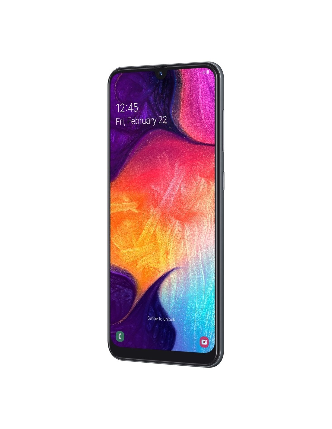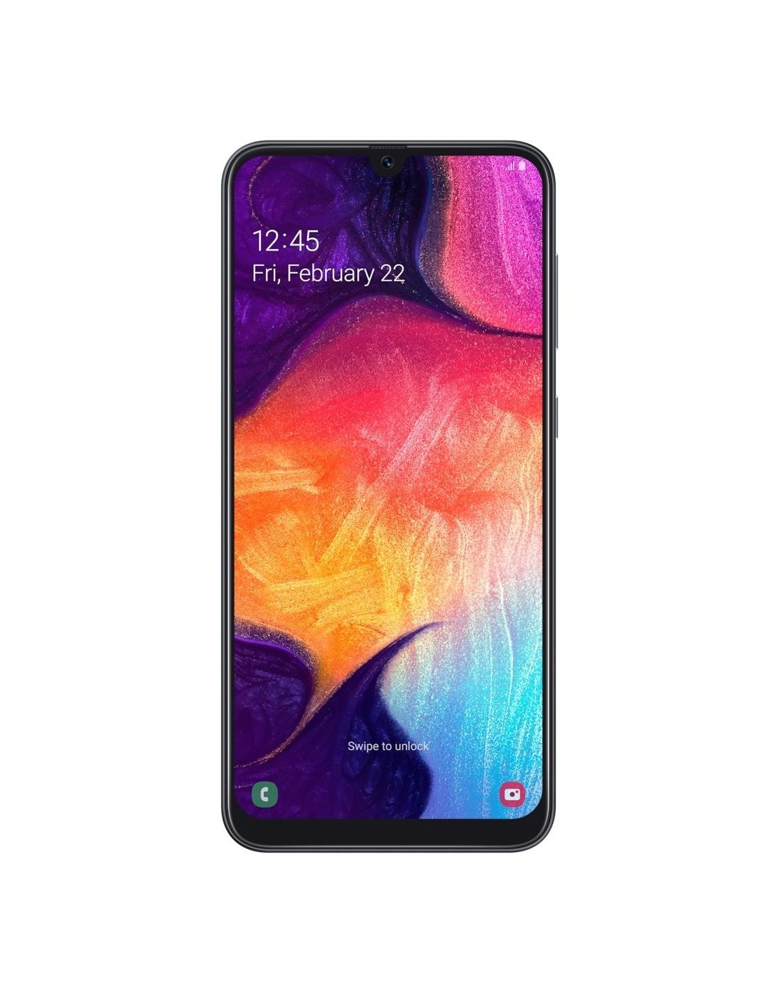 Samsung Galaxy A50 SM-A505F. Diagonal de la pantalla: 16,3 cm (6.4"), Resolución de la pantalla: 2340 x 1080 Pixeles. Frecuencia del procesador: 2,3 GHz. Capacidad de RAM: 4 GB, Capacidad de almacenamiento interno: 128 GB. Resolución de la cámara trasera (numérica): 25 MP, Tipo de cámara trasera: Triple cámara. Capacidad de la tarjeta SIM: Ranura híbrida Dual SIM. Capacidad de batería: 4000 mAh. Color del producto: Negro. Peso: 166 g