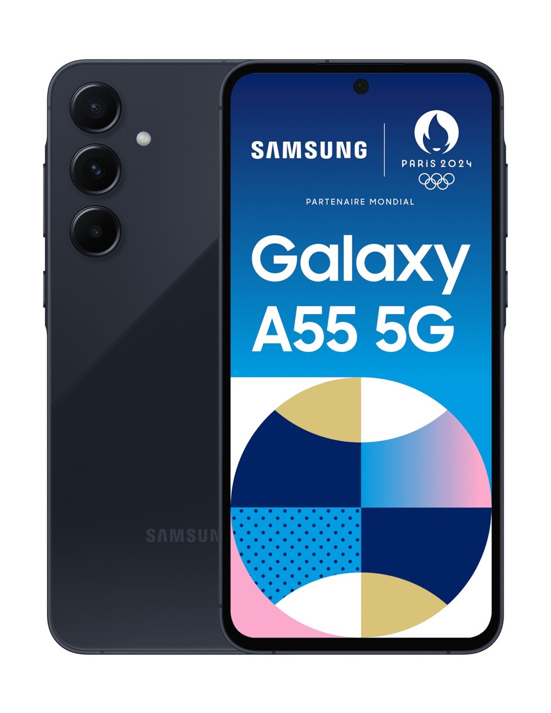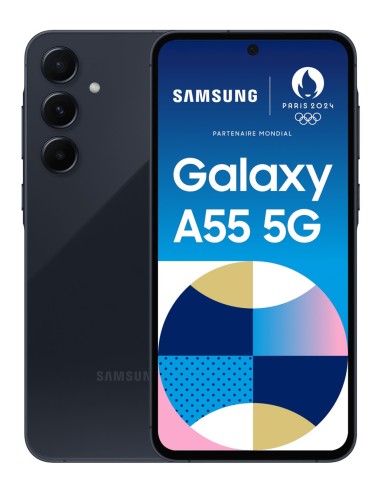 Samsung Galaxy A55 5G . Diagonal de la pantalla: 16,8 cm (6.6"), Resolución de la pantalla: 1080 x 2340 Pixeles. Frecuencia del procesador: 2 GHz, Familia de procesador: Samsung Exynos. Capacidad de RAM: 8 GB, Capacidad de almacenamiento interno: 256 GB. Resolución de la cámara trasera (numérica): 50 MP, Tipo de cámara trasera: Triple cámara. Capacidad de la tarjeta SIM: Ranura híbrida Dual SIM. Sistema operativo instalado: Android 14. Capacidad de batería: 5000 mAh. Color del producto: Marina. Peso: 213 g
