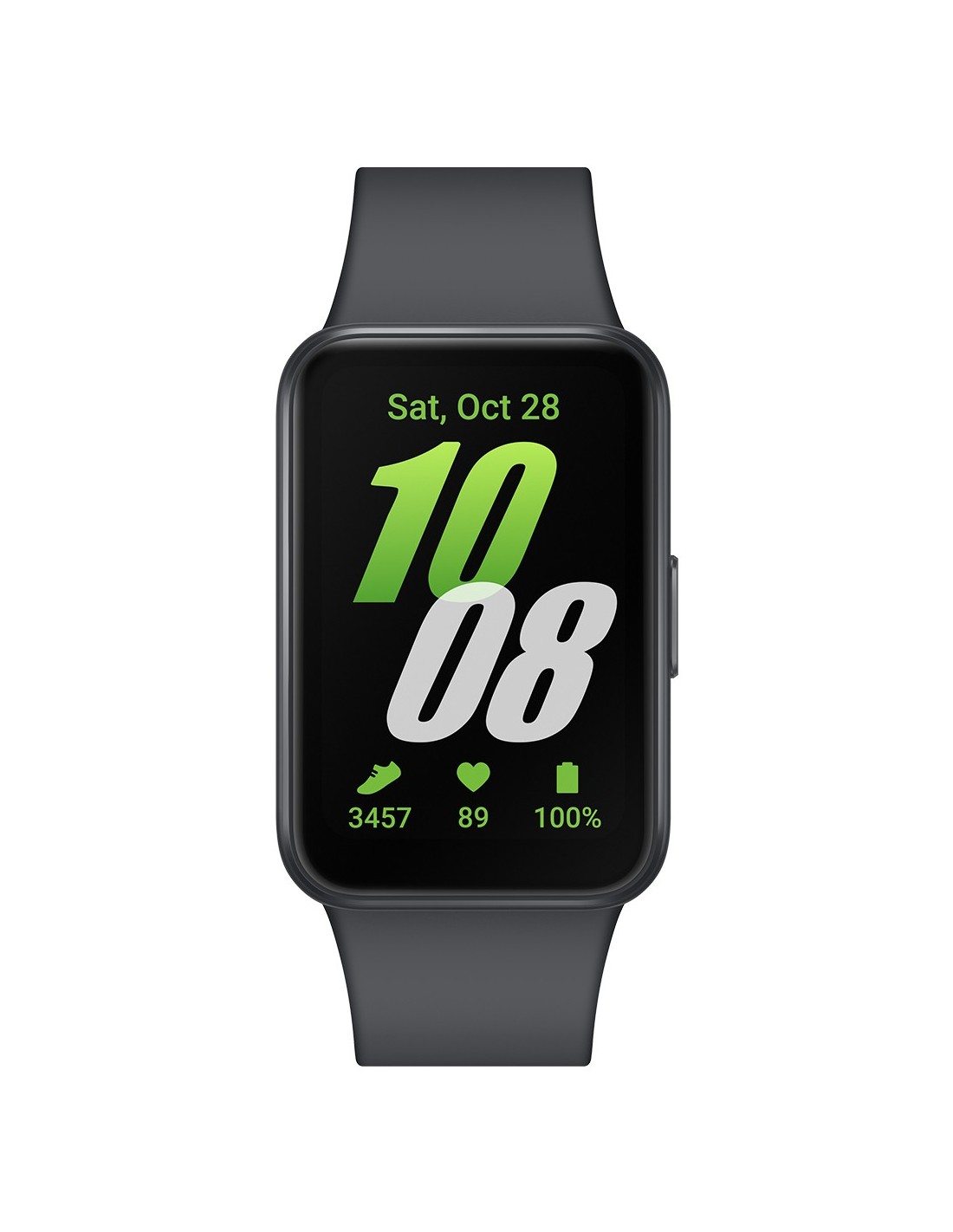 La gran pantalla de 1,6" ofrece mucho espacio para interactuar con tu Galaxy Fit3. Mira, toca y desliza.