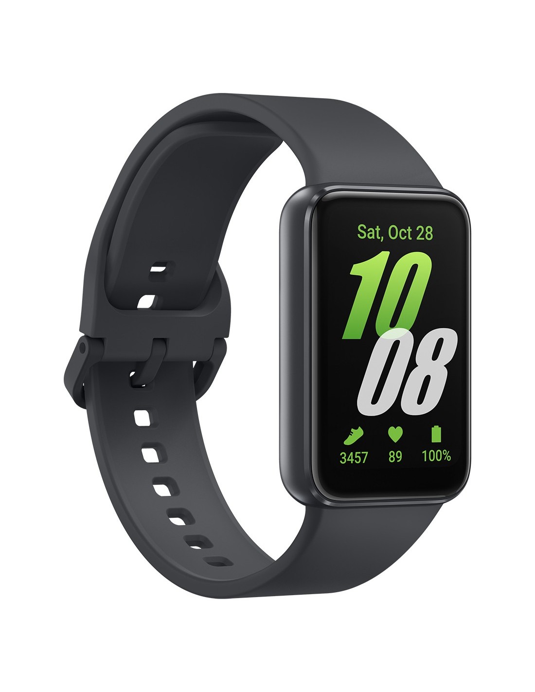 Samsung Galaxy Fit3. Diagonal de la pantalla: 4,06 cm (1.6"), Tecnología de visualización: AMOLED, Resolución de la pantalla: 256 x 402 Pixeles, Pantalla táctil. Capacidad de RAM: 16 MB, Memoria flash: 0,256 GB. Capacidad de batería: 208 mAh. Peso: 18,5 g. Color de banda: Gris. Sistema operativo instalado: FreeRTOS