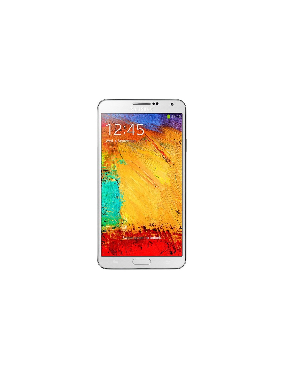 Samsung Galaxy Note 3 SM-N9005. Diagonal de la pantalla: 14,5 cm (5.7"), Resolución de la pantalla: 1920 x 1080 Pixeles. Frecuencia del procesador: 2,3 GHz. Capacidad de RAM: 3 GB, Capacidad de almacenamiento interno: 32 GB. Resolución de la cámara trasera (numérica): 13 MP, Tipo de cámara trasera: Cámara única. Capacidad de la tarjeta SIM: SIM única. Sistema operativo instalado: Android 4.3. Capacidad de batería: 3200 mAh. Color del producto: Blanco. Peso: 168 g